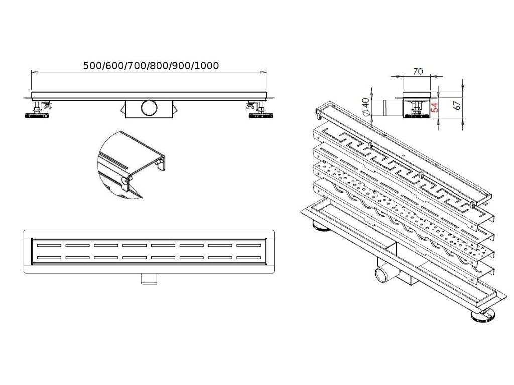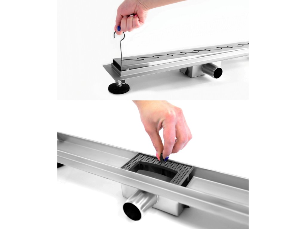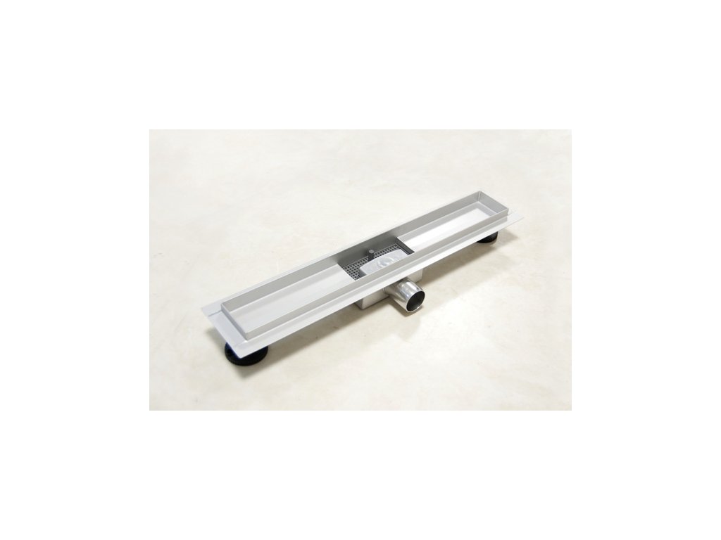 Sprchový žľab je celý vyrobený z kvalitnej nehrdzavejúcej ocele (nerezu) AISI 304 s hrúbkou 1,2mm (mriežka hrúbky 1,5mm). Žľab obsahuje nízky bezúdržbový nerezový sifón s možnosťou čistenia z vrchu. Prietok žľabu až do 50-60l/min. Na vrchnej mriežke žľabu sa nachádza krycia fólia, ktorá slúži na ochranu mriežky žľabu po montáži je potrebné ju odlepiť.